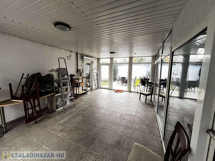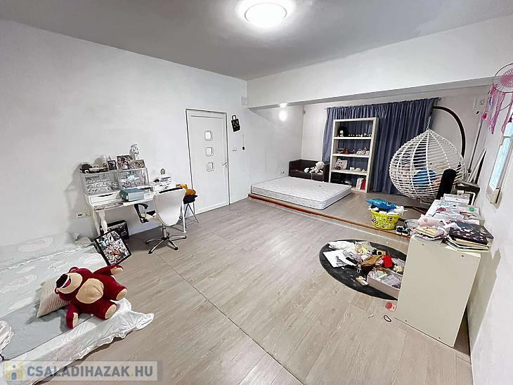 A ház 3 szintes, a földszinten: nappali, szoba, konyha, mosdó, kazánház áll rendelkezésünkre, az emeleten: 3 szoba, 1 félszoba, tágas fürdőszoba. Tetőtérben pedig 2 nagy fenyő burkolatú szoba került kialakításra. A gázkazán és teljes gázcsőhálózat cserére került 2024-ben. A ház rendelkezik egy 124 M2 melléképülettel, ahol a medence és a szauna kapott helyet, napelem fűti. A ház biztonságát kamera és riasztó védi.