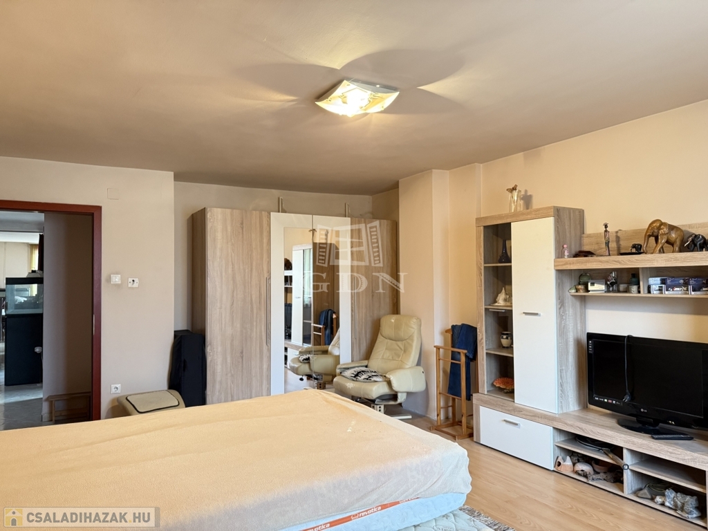 Az udvaron garázs egy autó részére. A lakás és a műhelyrész is riasztórendszerrel védett.