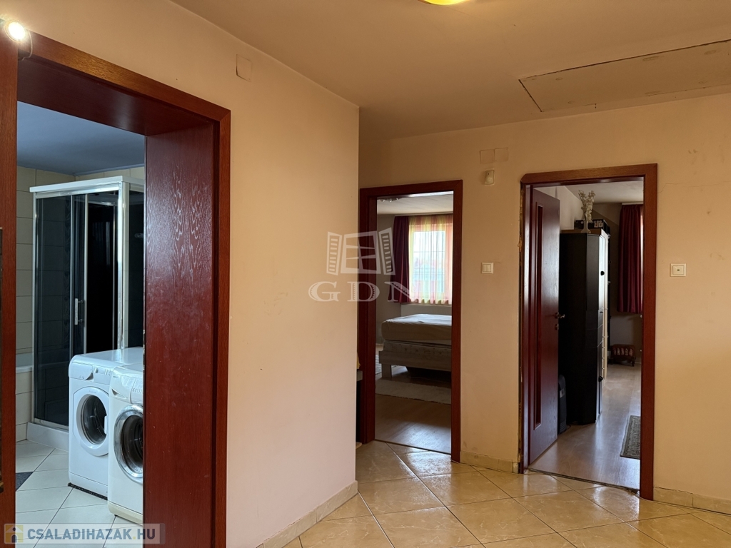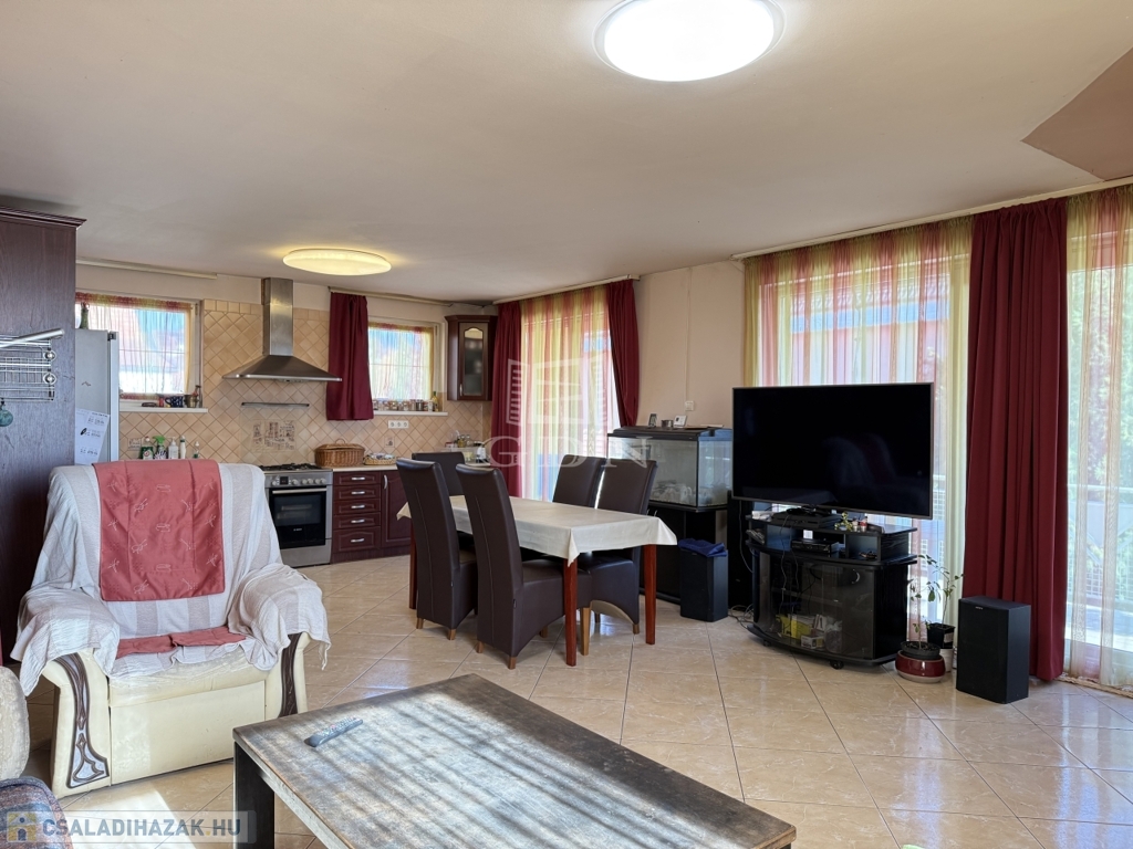 A lakótér az emeleten található 139 m2, melynek az elosztása a következő: amerikai konyhás nappali nagy terasszal, kandallóval, gardrób szoba, kamra, fürdőszoba ( káddal, két személyes hidromasszázs kabinnal ), két külön bejáratú hálószoba. A lakás a tetőtér felé tovább bővíthető, ami még plusz 90 m2-t jelent.