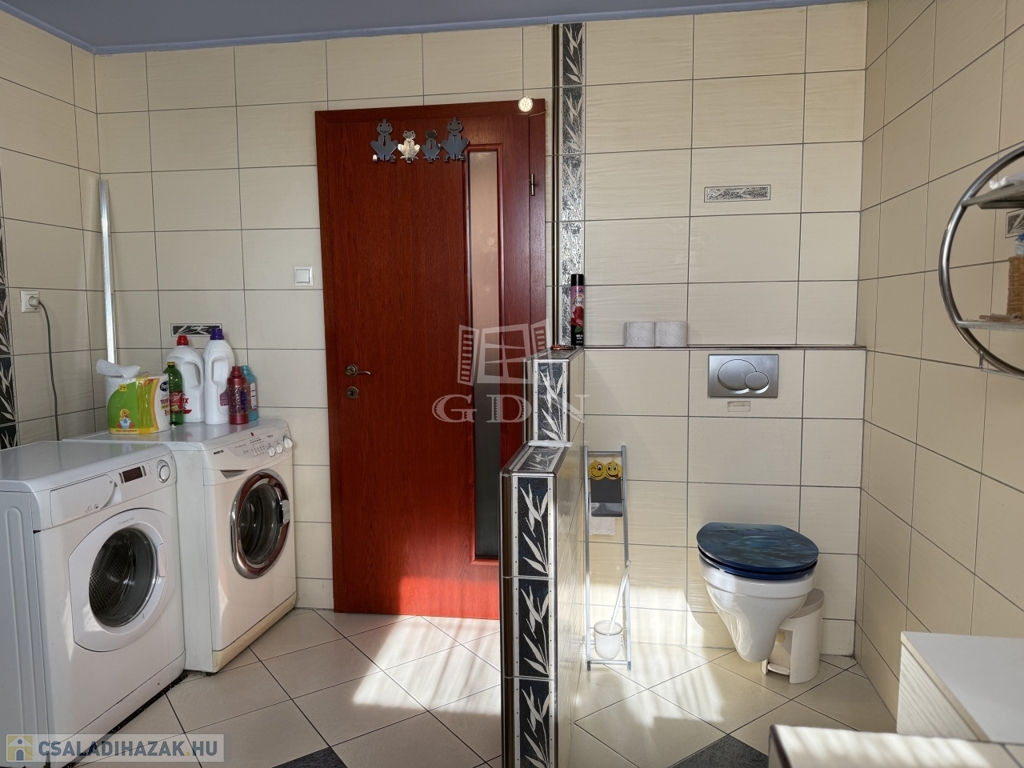 Az alsó szinten aknás, telephelyengedéllyel rendelkező műhely, iroda, fürdő, wc: 139 m2 alapterületen.