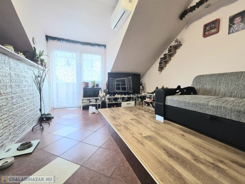 valamint a tetőtérben egy külön bejáratú lakás található.