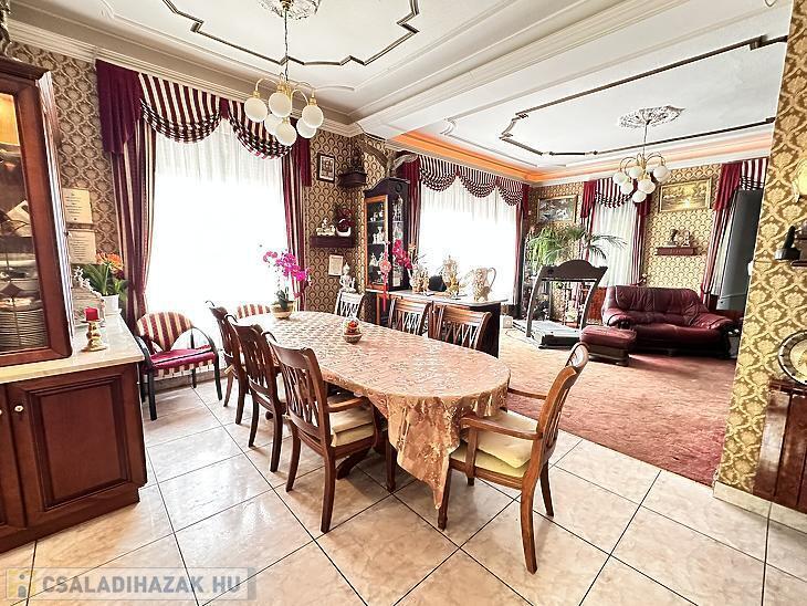 Ez a remek állapotú, 280 m²-es nagypolgári stílusú családi ház 1083 m²-es telken kínál tágas életteret és kényelmet, egy csendes, jól megközelíthető környéken, közel a tömegközlekedési és bevásárlási lehetőségekhez. Az ingatlan ideális választás lehet nagyobb családoknak, vagy akár két generáció számára is, hiszen az elrendezés könnyedén átalakítható.
