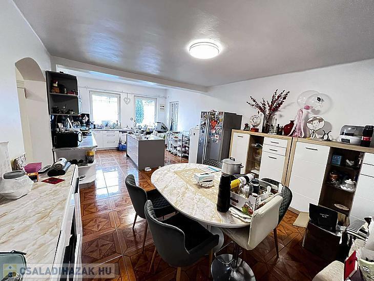 A ház 3 szintes étkezős konyha, előszoba, kádas fürdőszoba, és külön mellékhelyiség áll rendelkezésre. A földszinten: nappali, szoba konyha, mosdó, kazánház. Emeleten: 3 szoba, 1 félszoba, tágas fürdőszoba. Tetőtérben: 2 nagy fenyő burkolatú szoba. A gázkazán és teljes gázcsőhálózat cserére került 2024-ben. A ház rendelkezik egy 124 M2 melléképülettel, ahol a medence és a szauna kapott helyet, napelem fűti. A ház biztonságát kamera és riasztó védi.