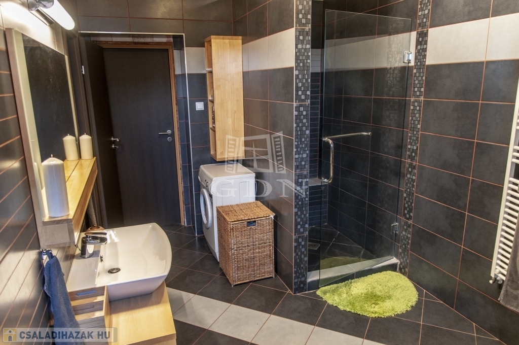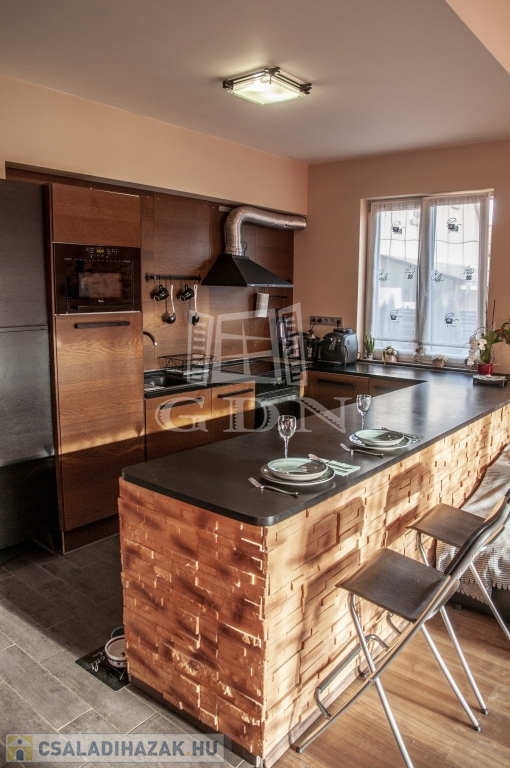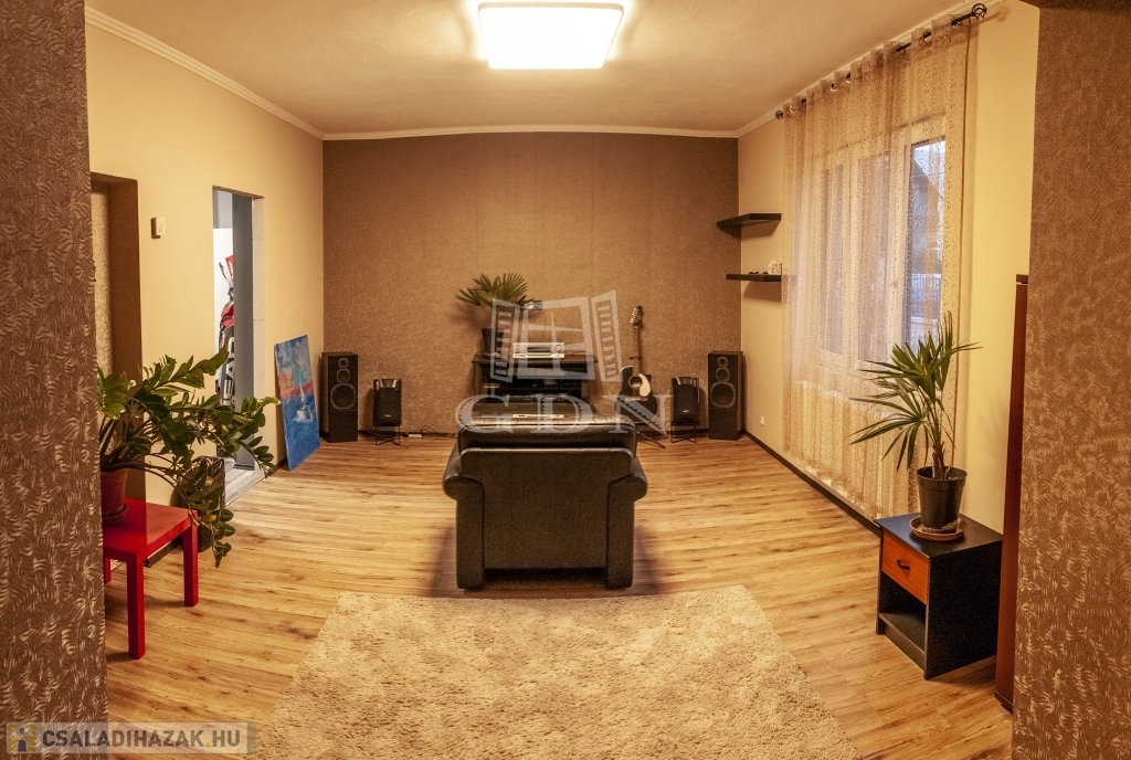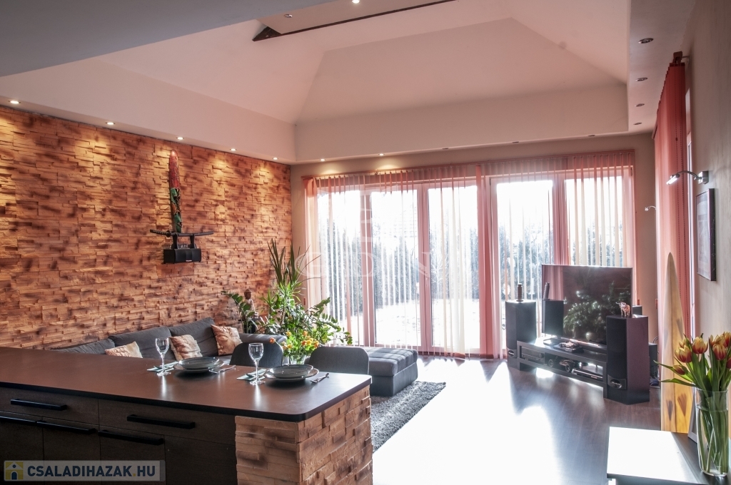 A családi ház 2 részletben került kialakításra. Az elülső, kb. 40nm-es 1960-as években épült MASSZÍV szerkezetű lakrészt 2010-ben teljes körűen újjáépítették és kibővítették a jelenlegi méretére. Az épület 30-as Porotherm téglából készült, melyet 15cm-es Dryvit-jellegű szigeteléssel láttak el. Nagyméretű ablakai energiatakarékos, 3 rétegű üvegezéssel ellátott fóliázott műanyagok, míg a bejárati ajtók alumínium. A fűtésről padlófűtés, valamint kombi gázcirkó kazán gondoskodik radiátoros hőleadókkal.