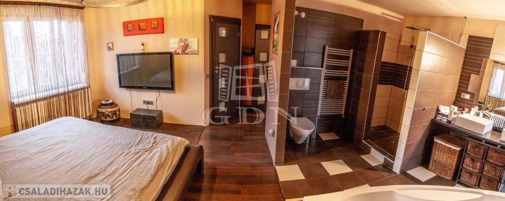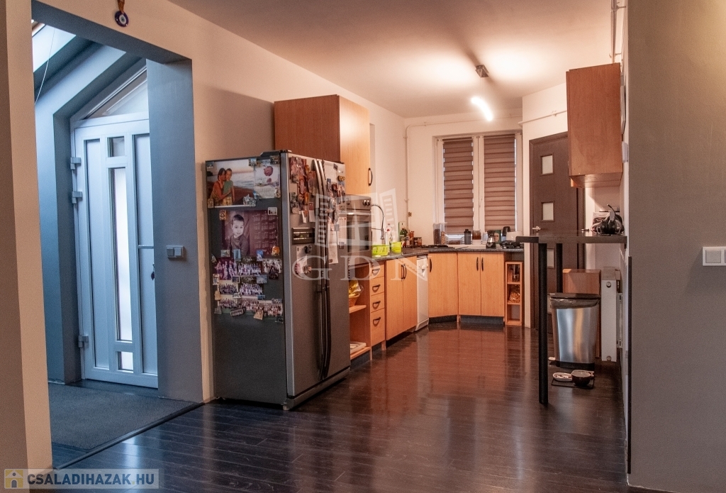 XVI. kerület Sashalom városrészen, rendezett, csendes, nyugodt utcában eladó egy 2010-ben épült, 270nm lakóterületű, 9 szobás, TÖBBGENERÁCIÓS, EGYEDI KIVITELEZÉSŰ, jelenleg 3 lakásból álló, modern, KÖRBEJÁRHATÓ, SZIGETELT családi ház 635 nm-es összközműves telken. Az épület körbenapozott, ez által nagyon világos.
