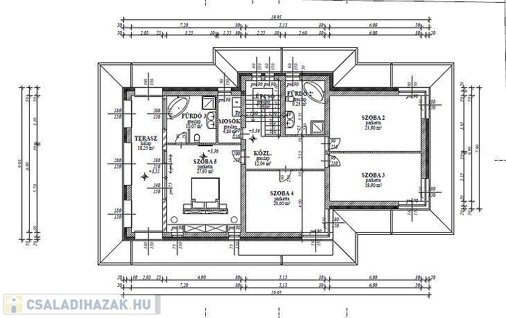 • 2 fürdőszoba (kád + zuhanyzó + WC)