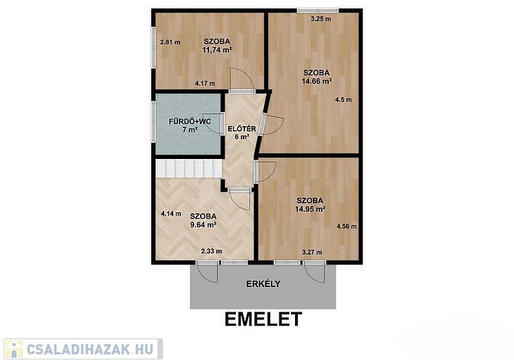 Szobákban laminált parketta, egyéb helyiségekben igényes járólap burkolat