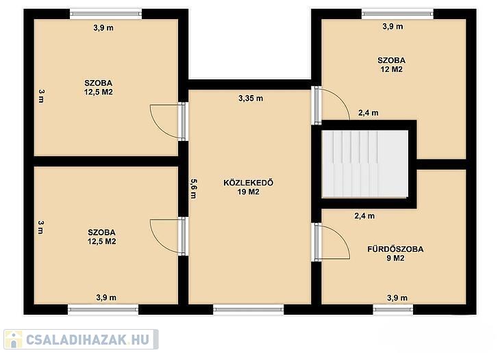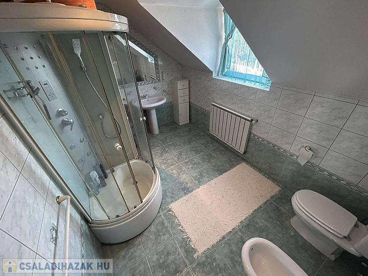 Emelet: 3 szoba, közösségi tér, zuhanyzós fürdőszoba + WC + infra szauna.