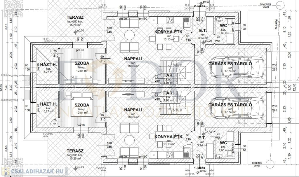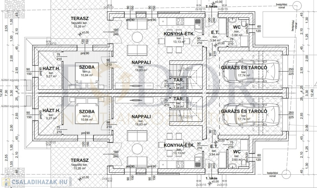 • 30 cm-es főfal + 15 cm homlokzati szigetelés a maximális energiahatékonyságért.