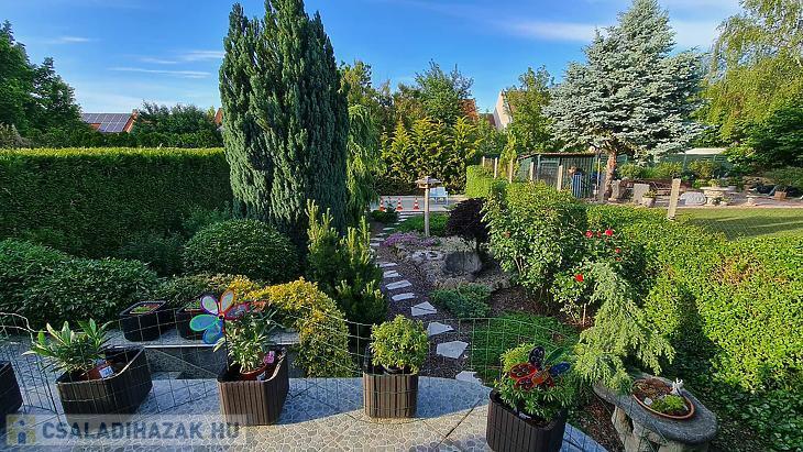 XVII. KERÜLETBEN: RÁKOSKERTEN, ELADÓ EGY 153 M2-ES, JÓ ÁLLAPOTÚ SORHÁZ, SAJÁT, GYÖNYÖRŰEN GONDOZOTT 456 M2-ES TELEKKEL, EGY 32 M2-ES HÁZ ALATTI GÉPKOCSIBEÁLLÓVAL ÉS SZEKCIONÁLT ELEKTROMOS GARÁZSKAPUVAL.