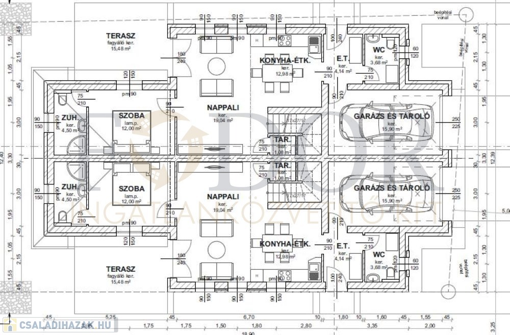 • 30 cm-es főfal + 15 cm homlokzati szigetelés a maximális energiahatékonyságért.