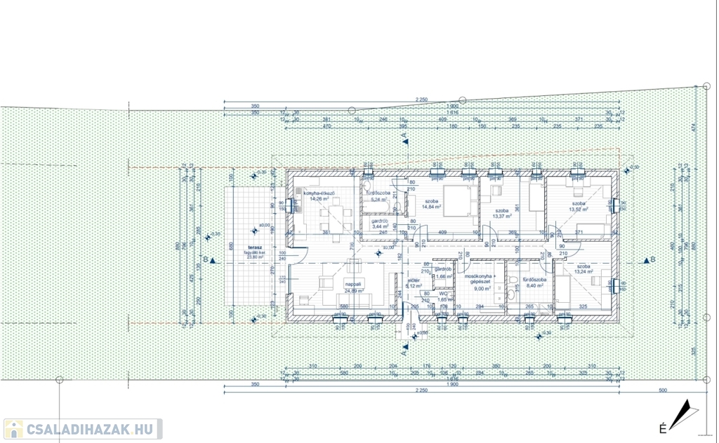A ház praktikus elrendezésének köszönhetően négy külön nyíló szoba és egy tágas amerikai konyhás nappali biztosítja a kényelmes mindennapokat, miközben a korszerű műszaki tartalom alacsony fenntartási költségeket garantál.