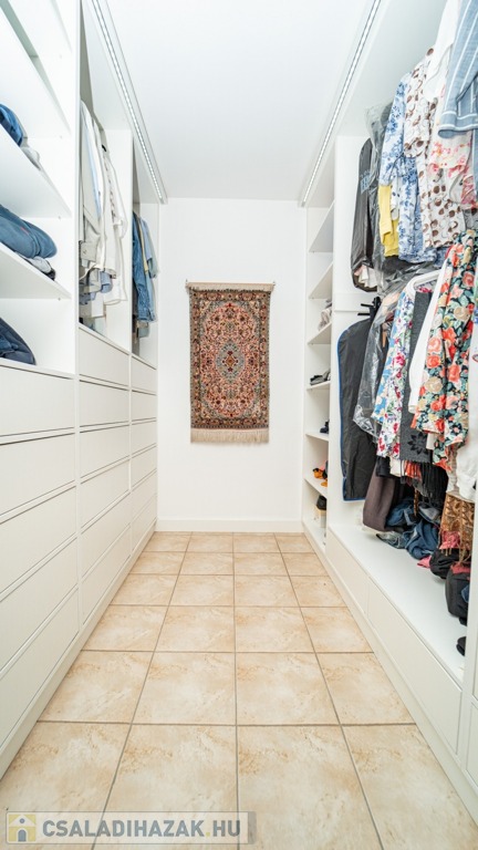 Az alsó szinten a teljes nettó lakótér 107 m2, egy 33 m2-es nappali mellett egy 16 m2-es háló + gardób és saját fürdő, 16 m2-es konyha étkezővel, kamra, külön vendégmosdó és egy 35 m2-es dupla garázs található (a teljes alapterület terasz nélkül 142 m2, a terasz plusz 15 m2), az emeleten, összesen nettó 65 m2-en 2 háló, emeleti nappali, wellnes helyiség szaunával és zuhanyzóval, fürdő, rengeteg tároló és gardróbhelyiség, valamint egy 12 m2-es, déli fekvésű erkély.