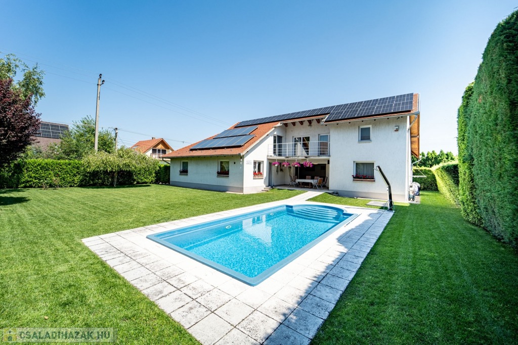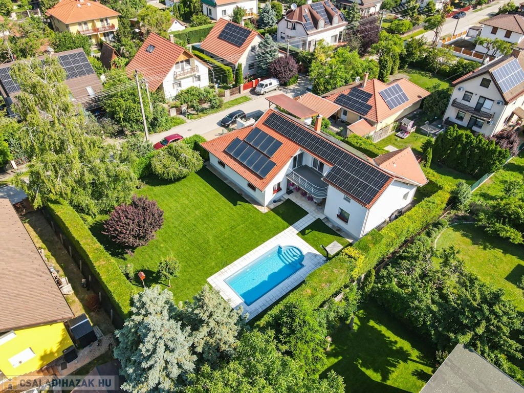 Rákoscsaba-újtelepen, a XVII. kerület csendes, családi házas övezetében eladó a képeken látható, 1146 m2-es duplatelekre 1996-ban épült 2 szintes, 2 nappali + 3 hálós plusz wellness helyiséges, A+++ energetikával rendelkező, szaunával és medencével, napelemmel és gyönyörű, kertész által gondozott kerttel rendelkező, szabadonálló családi ház.