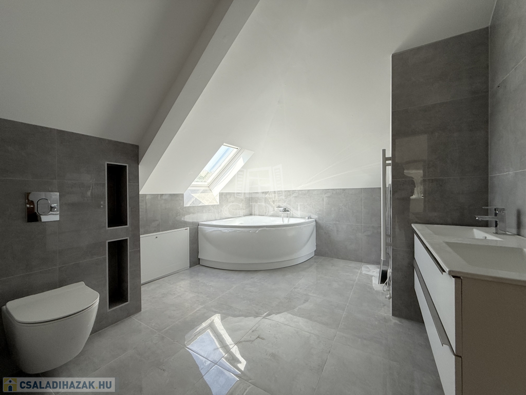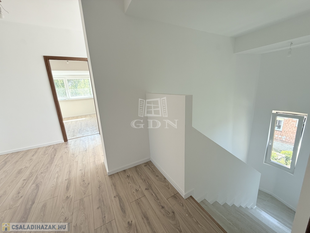 Budapest XVII. kerületében, Rákoscsaba egyik legnyugodtabb részén, a Mezőcsát utcában kínálunk megvételre egy teljeskörűen felújított, háromszintes családi házat, amely kizárólag a főfalakat és a tetőszerkezetet őrzi az eredeti állapotából – minden más újraépítésre került az idei évben, kiemelten magas műszaki színvonalon.