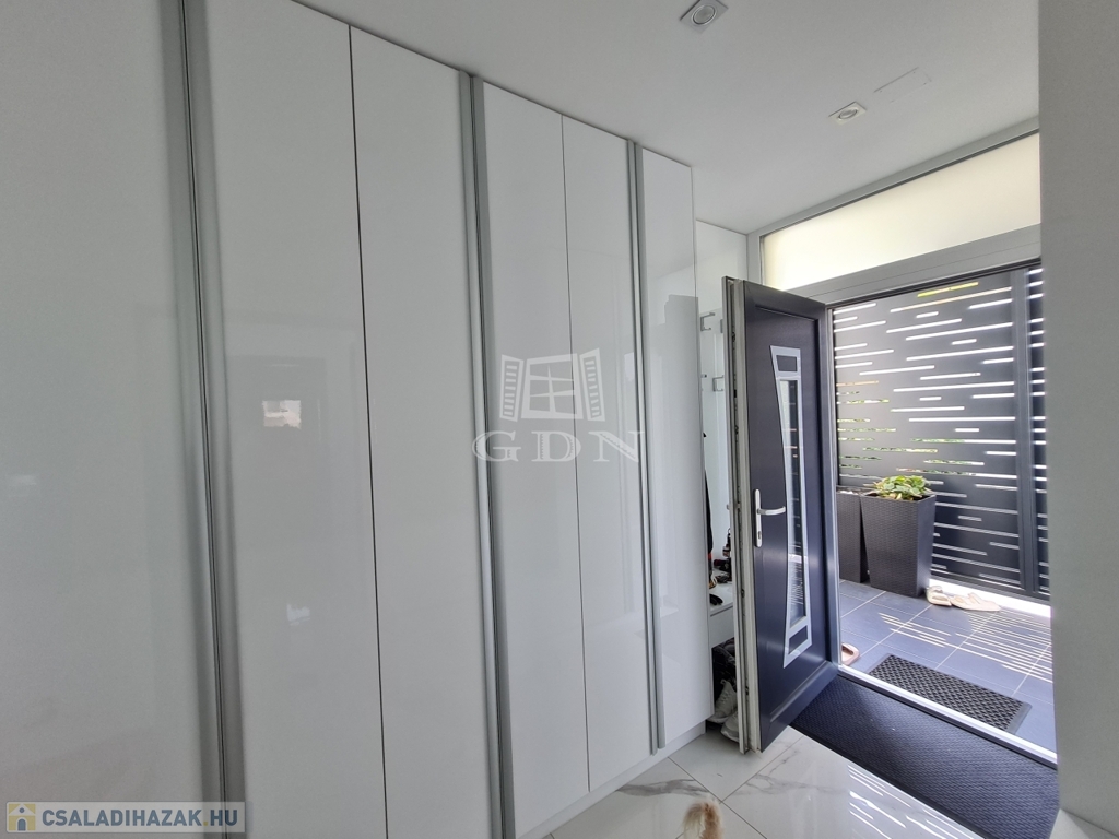 Budapest, XVII. kerületében a Madárdombon eladó egy 4 szintes, bruttó 233,88 m² fűtött, és 158 m² nettó területű 1 + 3 szobás, és 5 fürdőszobás, GARÁZSOS, ÚJSZERŰ állapotú, LUXUS kategóriájú iker fél.