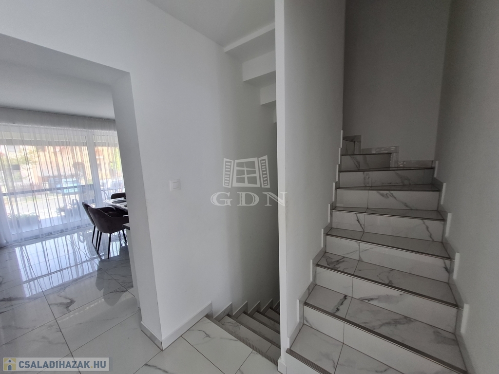 Budapest, XVII. kerületében a Madárdombon eladó egy 4 szintes, bruttó 233,88 m² fűtött, és 158 m² nettó területű 1 + 3 szobás, és 5 fürdőszobás, GARÁZSOS, ÚJSZERŰ állapotú, LUXUS kategóriájú iker fél.