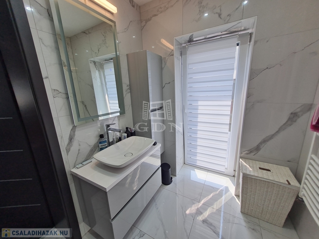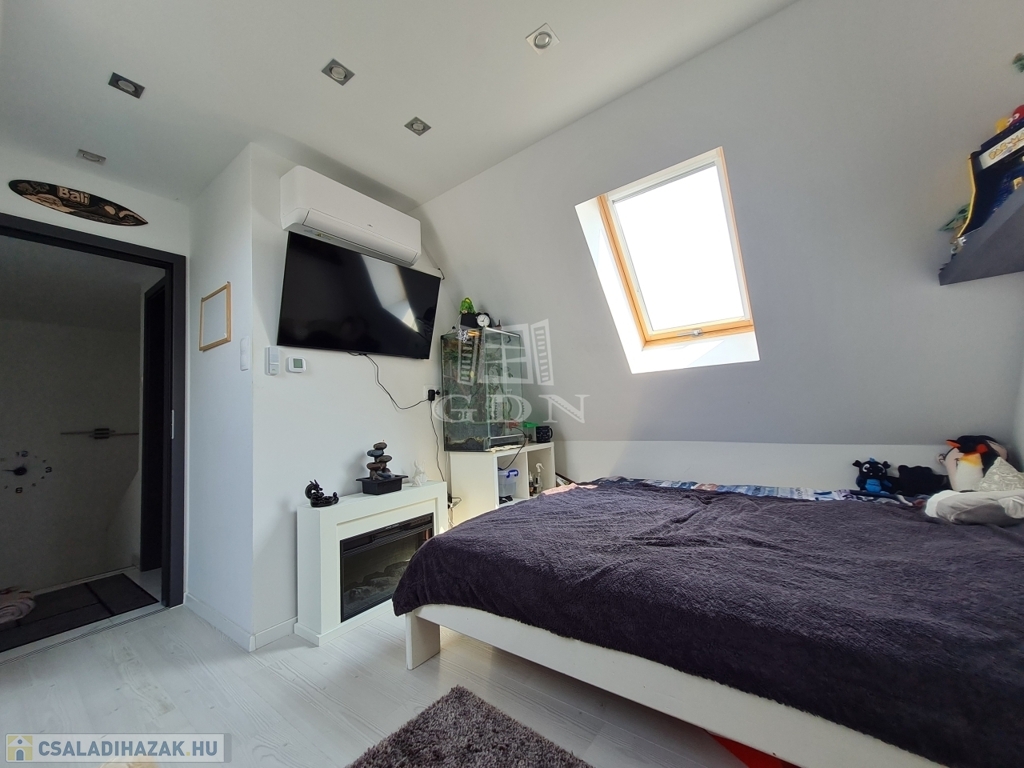 A szülői háló is klimatizált. A fürdőszobákban a padlófűtés mellett, törölköző szárító radiátor is tartozék.