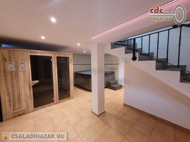XVII. kerületben, Akadémiaújtelepen eladó egy frissen felújított, 2 szintes, 300 m2-es luxusingatlan, ami egy 540 m2-es telken található. A ház földszintjén az előszobából nyílik egy vendégmosdó, egy zuhanyzós fürdőszoba WC-vel. Itt lett kialakítva a mosó – szárító egység. Ezen a szinten található a konyha és spájz, valamint étkező és egy fatüzelésű kandalló. A konyhai, minőségi, beépített gépeket a vételár tartalmazza. A nappali 30 m2-es, kertre néző panorámával rendelkezik. Továbbiakban kialakításra került egy 20 m2-es szoba, ami vendégszobának vagy fitneszteremnek is használható, illetve funkcionálhat gardróbszobaként is. A ház emeleti szintjén 6 hálószoba került kialakításra. A szülői hálóban Wellis szabadonálló kád saját mosdóval és WC-vel, valamint beépített gardróbszekrénnyel rendelkezik. A ház pinceszintje a földszinti előszobából nyílik. Itt egy wellness részleg került kialakításra 5 férőhelyes jakuzzi, egy tágas infra- és finnszauna, valamint egy gőzkabinos zuhanyzó, mosdó. Kazánhelyiség is elhelyezésre került a pinceszinten. A ház minden nyílászárója műanyag, az ablakokon alumínium redőny található. A házban mozgásérzékelők, riasztó- és kamerarendszer is működik. A kapuk távirányítóval és okos rendszerrel telefonról is nyithatóak. A melegvíz ellátást és fűtést cirkókazán biztosítja. A parkolás 2 gépjármű befogadására alkalmas garázsban lehetséges, ami elektromos garázskapuval rendelkezik.