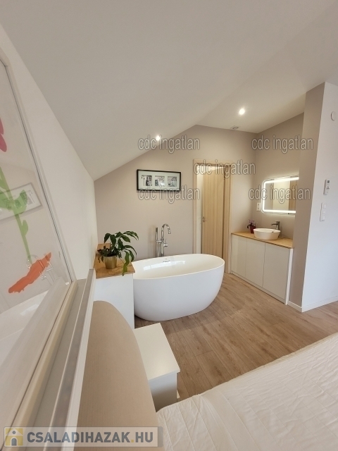 XVII. kerületben, Akadémiaújtelepen eladó egy frissen felújított, 2 szintes, 300 m2-es luxusingatlan, ami egy 540 m2-es telken található. A ház földszintjén az előszobából nyílik egy vendégmosdó, egy zuhanyzós fürdőszoba WC-vel. Itt lett kialakítva a mosó – szárító egység. Ezen a szinten található a konyha és spájz, valamint étkező és egy fatüzelésű kandalló. A konyhai, minőségi, beépített gépeket a vételár tartalmazza. A nappali 30 m2-es, kertre néző panorámával rendelkezik. Továbbiakban kialakításra került egy 20 m2-es szoba, ami vendégszobának vagy fitneszteremnek is használható, illetve funkcionálhat gardróbszobaként is. A ház emeleti szintjén 6 hálószoba került kialakításra. A szülői hálóban Wellis szabadonálló kád saját mosdóval és WC-vel, valamint beépített gardróbszekrénnyel rendelkezik. A ház pinceszintje a földszinti előszobából nyílik. Itt egy wellness részleg került kialakításra 5 férőhelyes jakuzzi, egy tágas infra- és finnszauna, valamint egy gőzkabinos zuhanyzó, mosdó. Kazánhelyiség is elhelyezésre került a pinceszinten. A ház minden nyílászárója műanyag, az ablakokon alumínium redőny található. A házban mozgásérzékelők, riasztó- és kamerarendszer is működik. A kapuk távirányítóval és okos rendszerrel telefonról is nyithatóak. A melegvíz ellátást és fűtést cirkókazán biztosítja. A parkolás 2 gépjármű befogadására alkalmas garázsban lehetséges, ami elektromos garázskapuval rendelkezik.