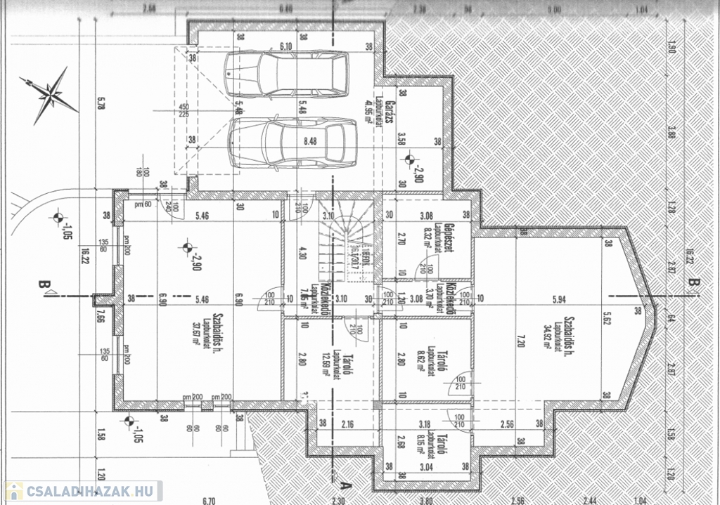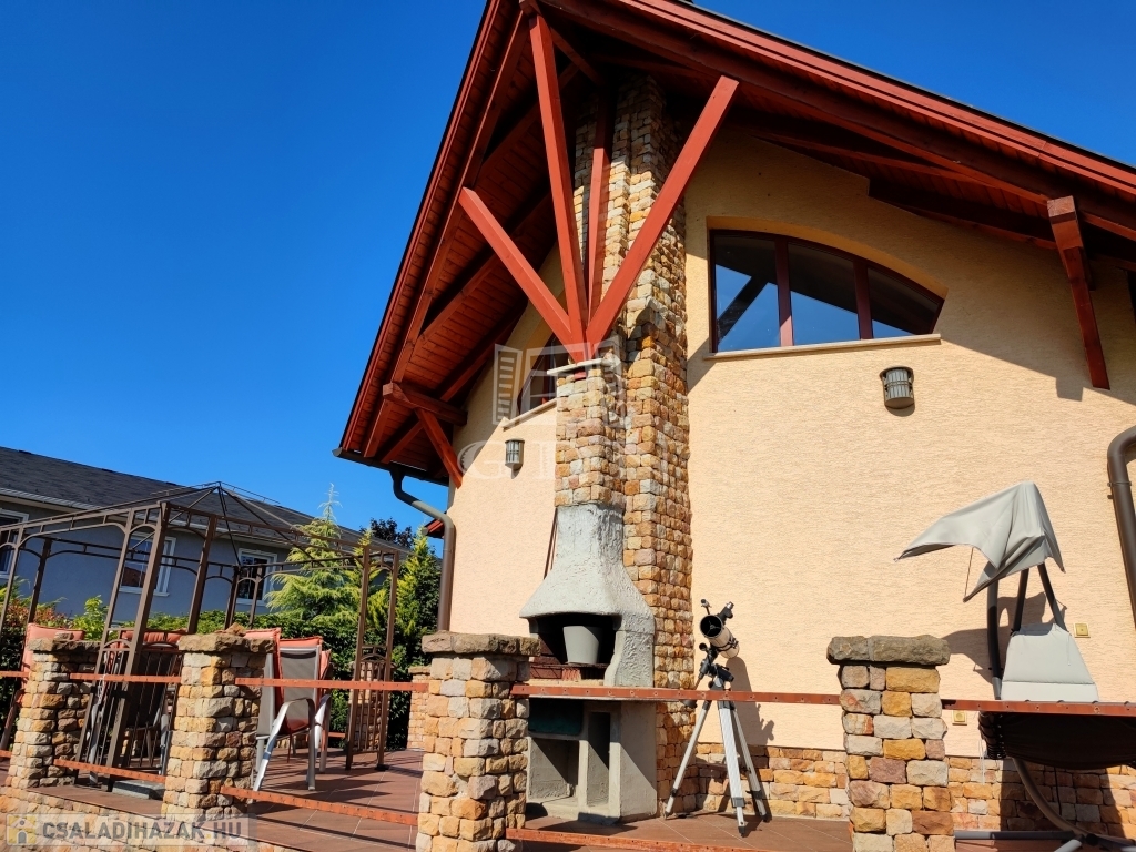 A ház alapterülete nettó 160 m2, a pinceszint szintén160 m2, a telek 850 m2.