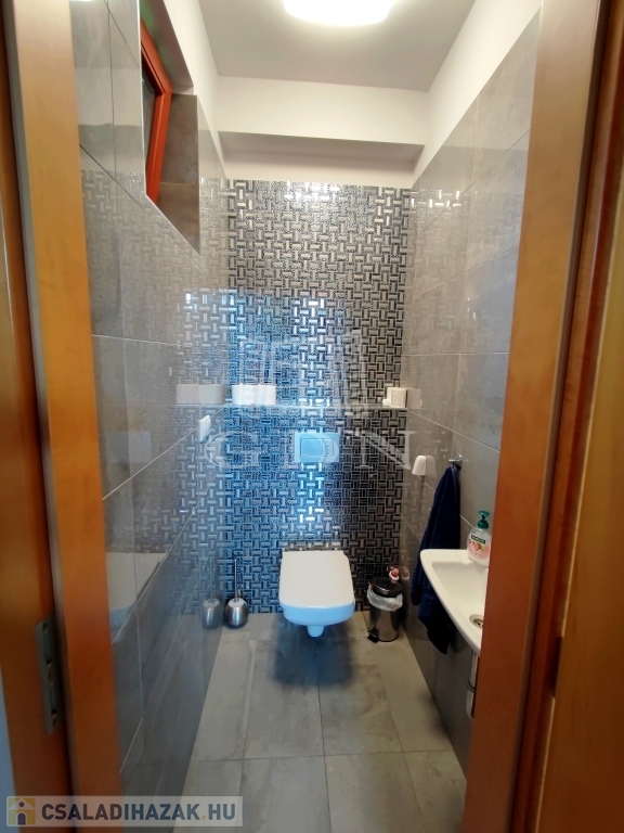 Az előkert felől KÜLÖN BEJÁRATtal kialakításra került egy önálló LAKRÉSZ saját fürdővel és konyhával, mely akár IRODÁNAK is használható.