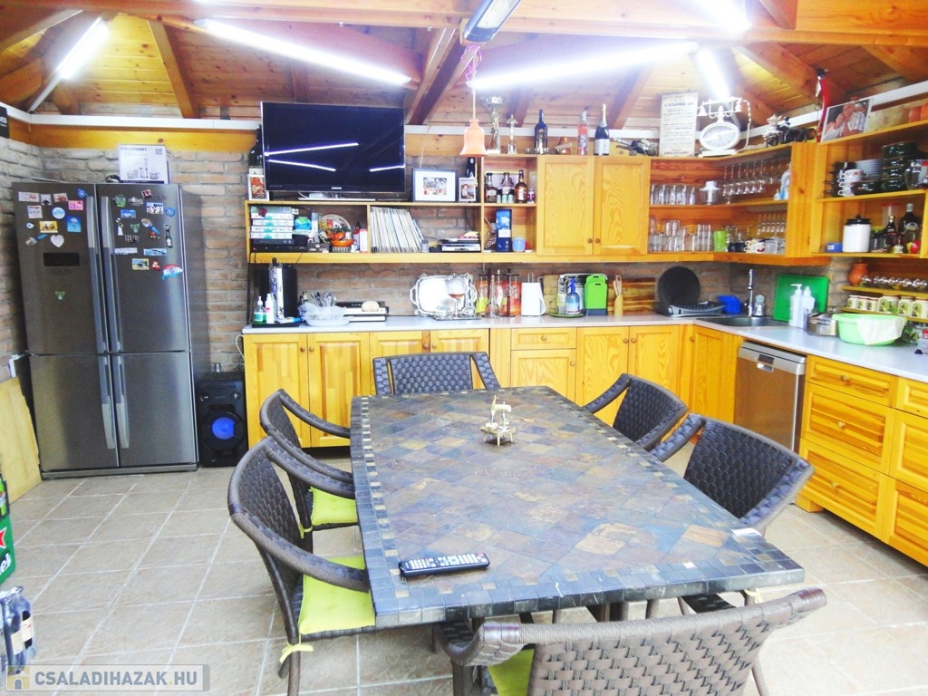 A rezidencia további különlegessége még a főépület és a különálló épület között álló, 25 nm-es ízlésesen kialakított nyári konyha, teljesen gépesített konyhabútorral, motoros redőnnyel ellátva.