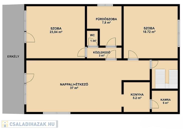 ELRENDEZÉS: 2 szoba, étkezős nappali, konyha, zuhanyzós + kádas fürdőszoba, mellékhelyiség, 2 erkély, kamra.