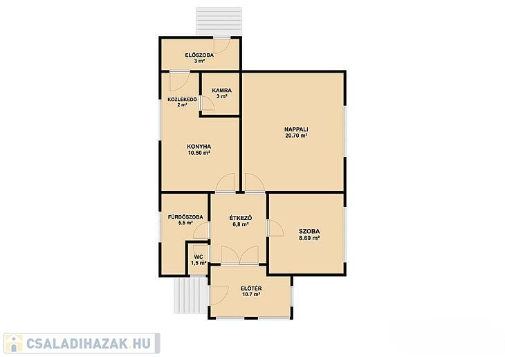 ELRENDEZÉS: nappali, szoba, előtér, fürdőszoba, mellékhelyiség, kamra, előszoba, pince.