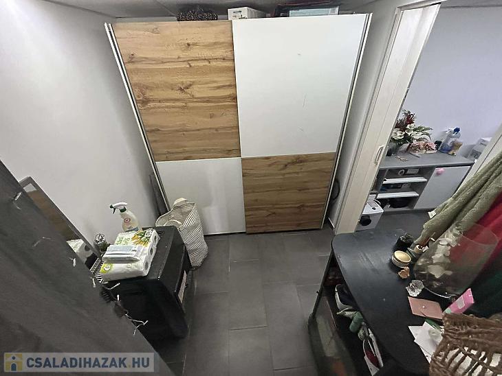 A szuterénben a konyha és fürdőszoba csempével, míg a hálószoba parkettával burkolt.