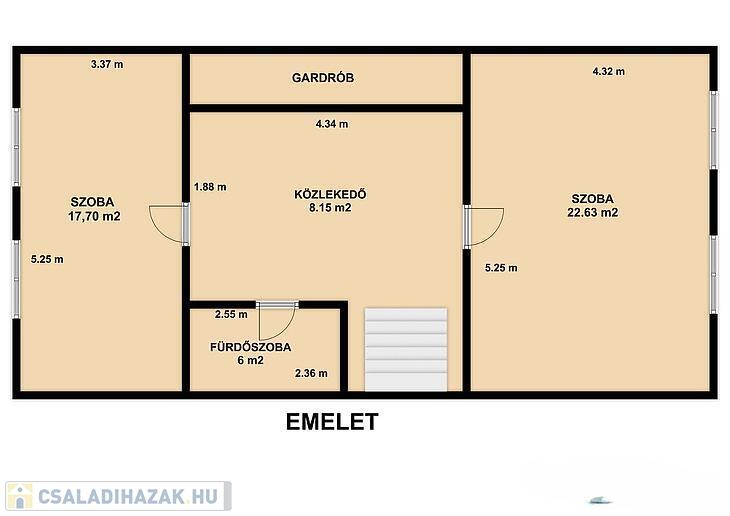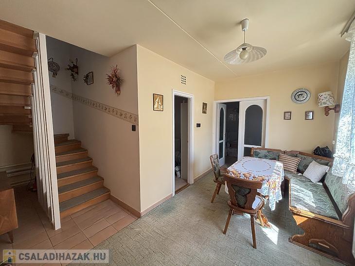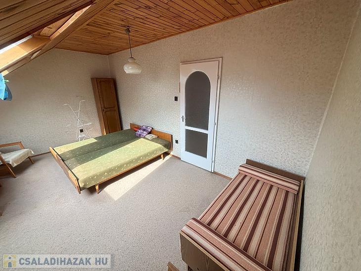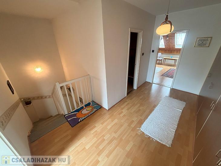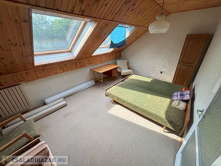 Emelet: 2 szoba, kádas fürdőszoba + mellékhelyiség, közlekedő.