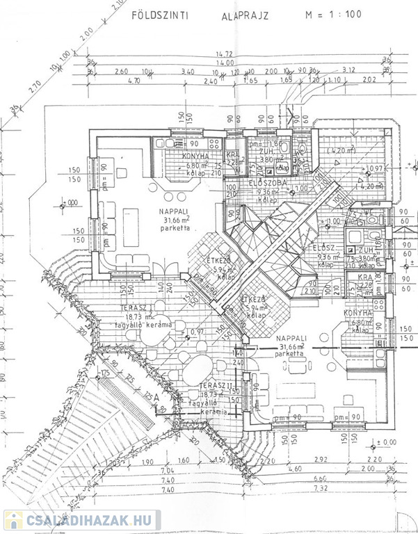 Eladásra kínálok a 18. kerületben, Pestszentimre Erdőskerti részén, a Nagykőrösi útra merőleges, csendes utcájában, családi házas övezetben, 684 nm alapterületű osztatlan közös telken álló, 1995-ben épült 2 szintes, pincézett, amerikai konyhás nappali + 3 félszobás, 175 nm-es, átlagos állapotú, részben felújítandó állapotú, iker beépítésű családi ház egyik felét, pinceszinten közel 40 nm-es, 2 állásos hatalmas garázzsal, műhelyrésszel, plusz tárolókkal, saját használatú rendezett, és szép állapotú, a ház mindkét oldalán húzódó saját kerttel és saját használatú hátsó udvarral, öntözőrendszerrel, külön locsolásra használható, külön mért, kedvező tarifájú vízfogyasztással, 18,7 nm-es saját terasszal.