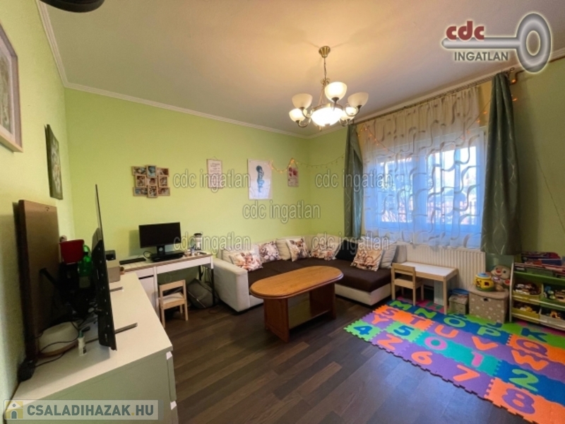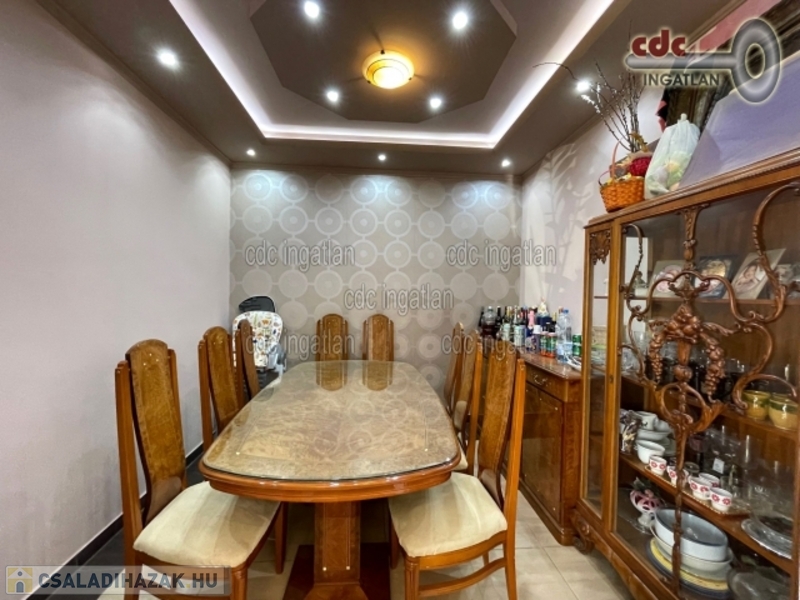 XVIII. kerületben, Ganz-kertvárosban kínálunk eladásra egy 160 m2-es, két szintes, körbenapozott, felújított önálló családi házat, mely egy 548 m2-es telken fekszik. A földszinten egy kényelmes, ablakos konyha, étkező, nappali, fürdő, az emeleten további 3 szoba és szintén fürdő található. Ezen felül, egy külön amerikai konyhás nappali és egy hozzá tartozó fürdő egy külön lakrészként lett kialakítva. A fűtést kombicirkó készülék biztosítja, a ház 15 cm-es szigetelést kapott. A villany- és gázfogyasztás a kedvezményes tarifán belül esik. A kertben egy 15 m2-es, tárolásra alkalmas kerti faház, szaletli, kerti sütögető lett kialakítva. Tárolásra egy 7 m2-es pincében szintén van lehetőség. A telek térkövezett részén akár 3 gépkocsi is kényelmesen tud parkolni, a beállást elektromos kapu könnyíti. A környék békés, csendes, családbarát. A közelben iskola, óvoda, bevásárlási lehetőség, a Market Central. Az ingatlan tehermentes, 1/1-es tulajdonú.