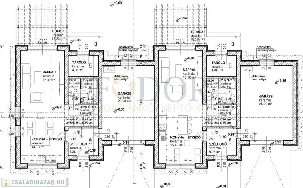 A két épület csak a garázsnál kapcsolódik, külön utcafronttal és saját, leválasztott 276 m²-es telekrésszel.