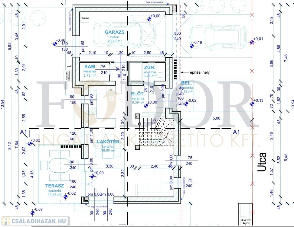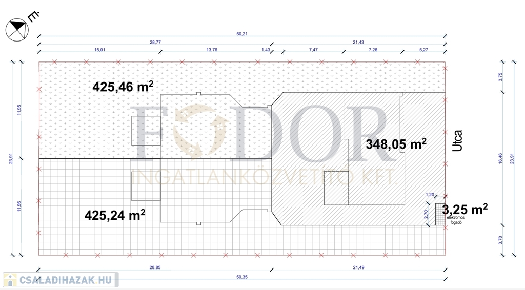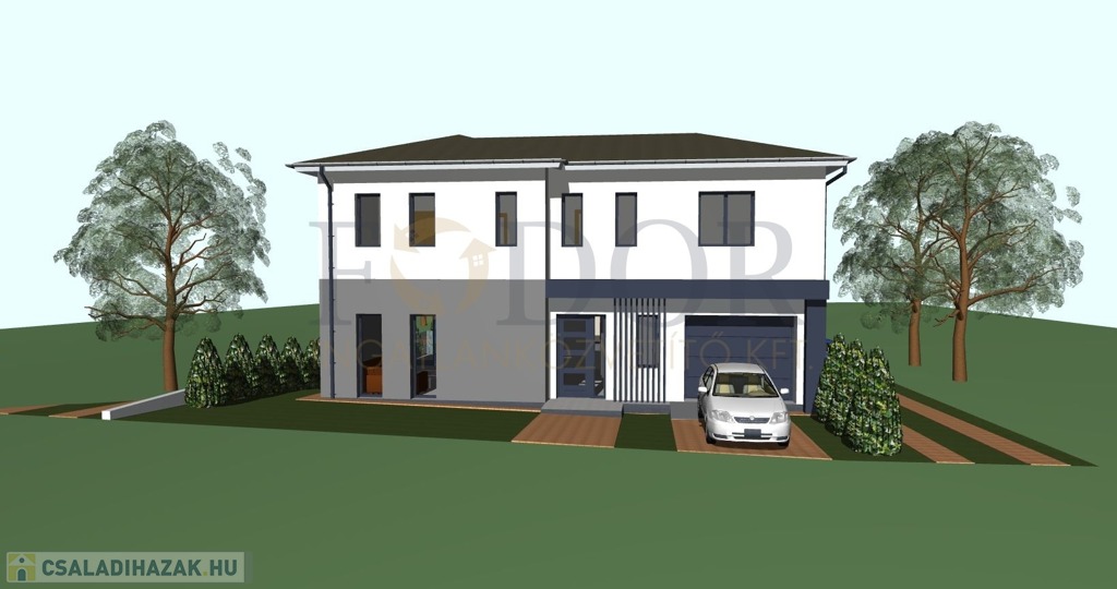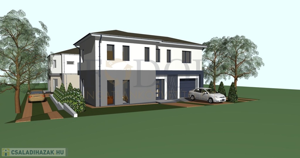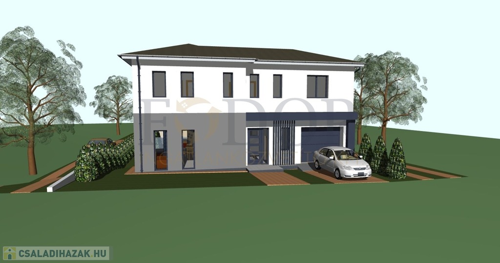 • Telekméret: Önálló családi ház 348 m², Ikerházak külön-külön: 425 m²