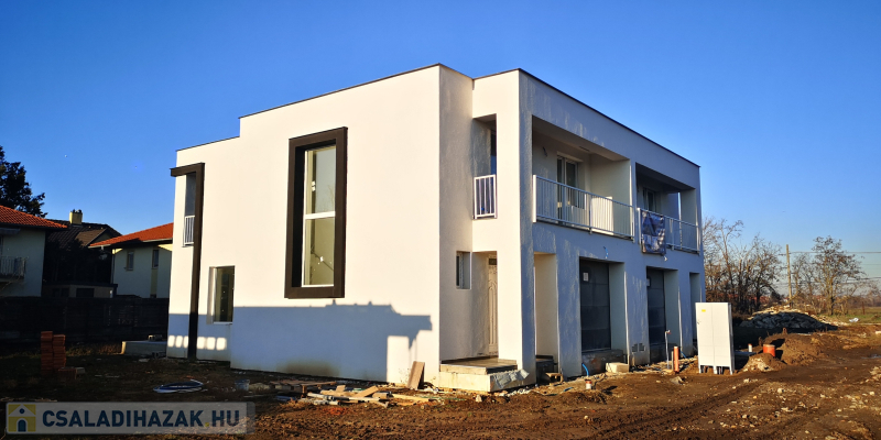 Pestszentlőrinc csendes, kertvárosi részén összesen 152 m2-es, kétszintes, nappali + 4 szobás, 2 fürdőszobás, garázsos, utca felől nézve jobb oldali ikerházi lakás napelemmel 375 m2-es telekrésszel 2025 nyár végi átadással eladó. Infrafűtés, klíma kiállások szobánként, elektromos bojler, műanyag homlokzati nyílászárók 3 rétegű, hő- és hangszigetelt üvegezéssel, hőszigetelt főfalak, tetőtér és aljzat.