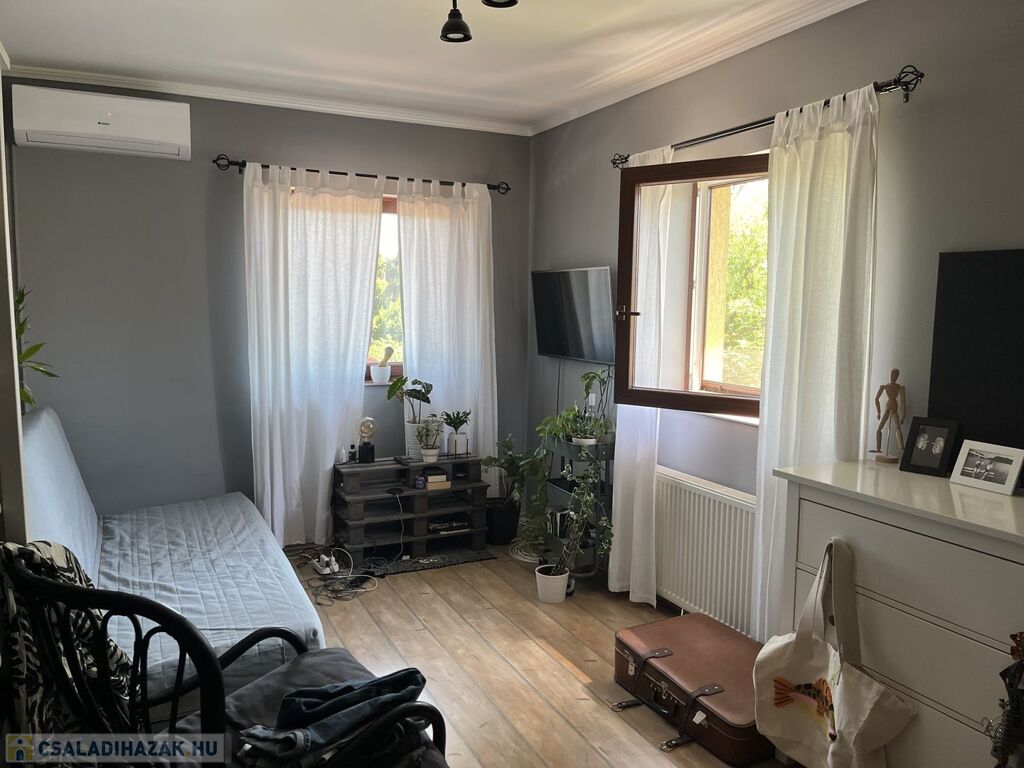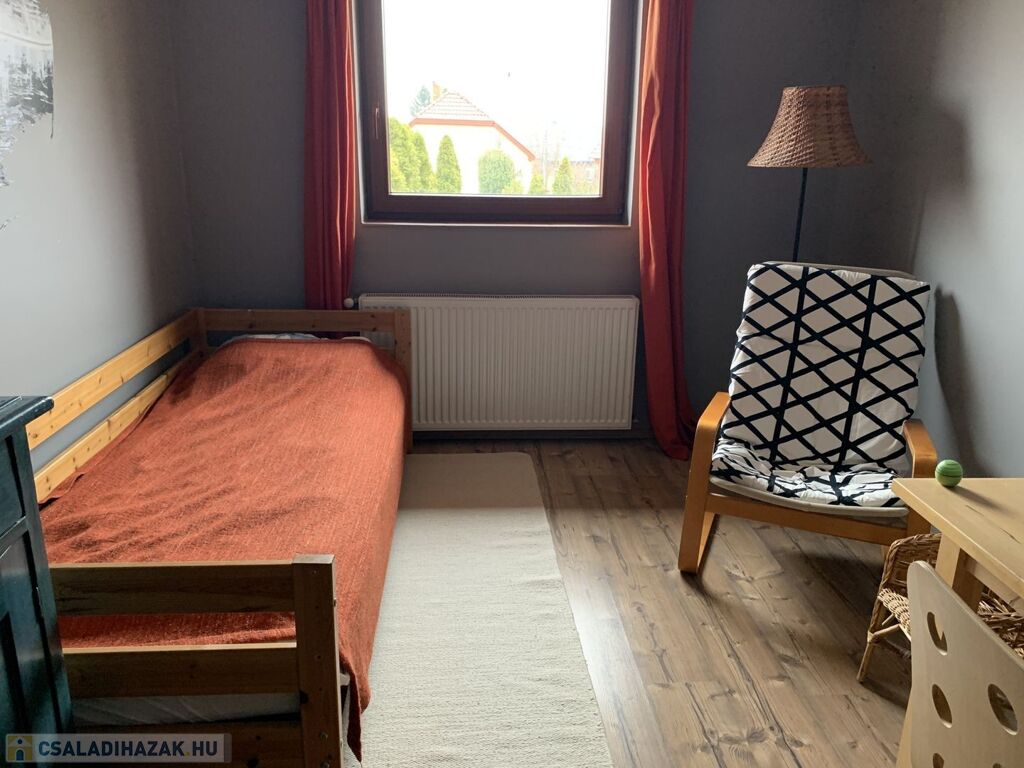 Az emeletre fa borítású lépcső vezet fel, ahol két tágas hálószoba található mindkettő ideális akár gyerekszobának, akár dolgozó- vagy vendégszobának is. A szinten kapott helyet a második fürdőszoba, amelyben pezsgőfürdős kád, dupla mosdókagyló és WC is rendelkezésre áll. Innen egy padláslétrán keresztül feljuthatunk a tárolásra is alkalmas padlástérbe.