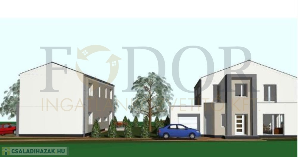 Elhelyezkedését tekintve az utcafront felől az önálló családi ház, a telek hátsó részén az emeletes ikerház kerül kivitelezésre. Az egész telek 1300 nm. Az önálló családi ház és az ikerházi lakások is saját leválasztott telekrésszel rendelkeznek, képek alatt a helyszínrajzon is jól látható. Az önálló épülethez tartozó telekterület kb 500 nm, az ikerházakhoz tartozó telekterület kb 400 nm.