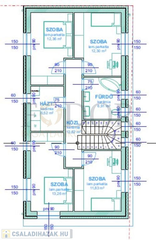 • 30-as főfal +10 cm-es tégla válaszfalak+ 15 cm homlokzati szigetelés