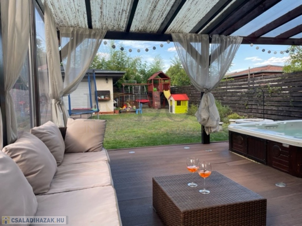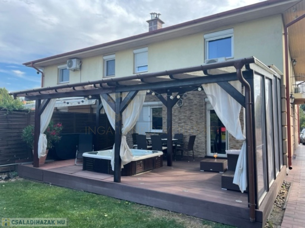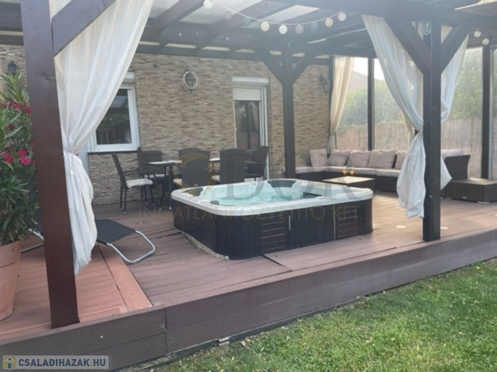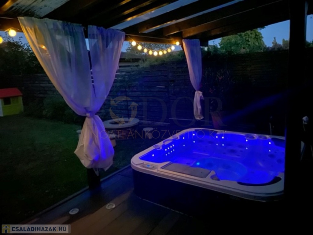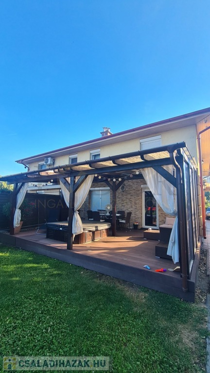 beépítésre. 2019-ben 32 kw-os zárt égésterű kombi gázcirkó cseréje megtörtént alsó szinten padlófűtés, emelti szinten radiátoros fűtés üzemel. 2024-ben 5 KW-os, szaldós rendszerben elszámolt napelemes rendszer került felszerelésre. Az épület számos extrával felszerelt, riasztó és kamerarendszer, 35 nm-es polikarbonáttal fedett és wpc-vel burkolt terasz jacuzzival, kerti halastó, elektromos árnyékoló, automata öntözőrendszer, elektromos motorizált nagykapu, ledvilágítás. Az ingatlan osztatlan közös
