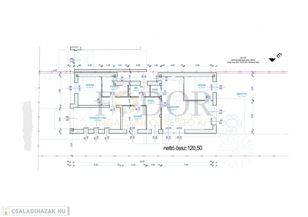 A ház egyszintes, nettó 101,3 m² alapterületű + 19,20 m² garázs, tágas és élhető kialakítással:
