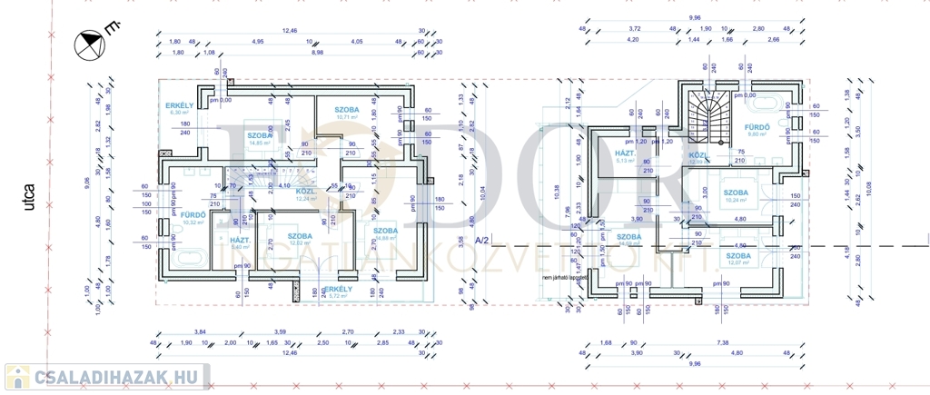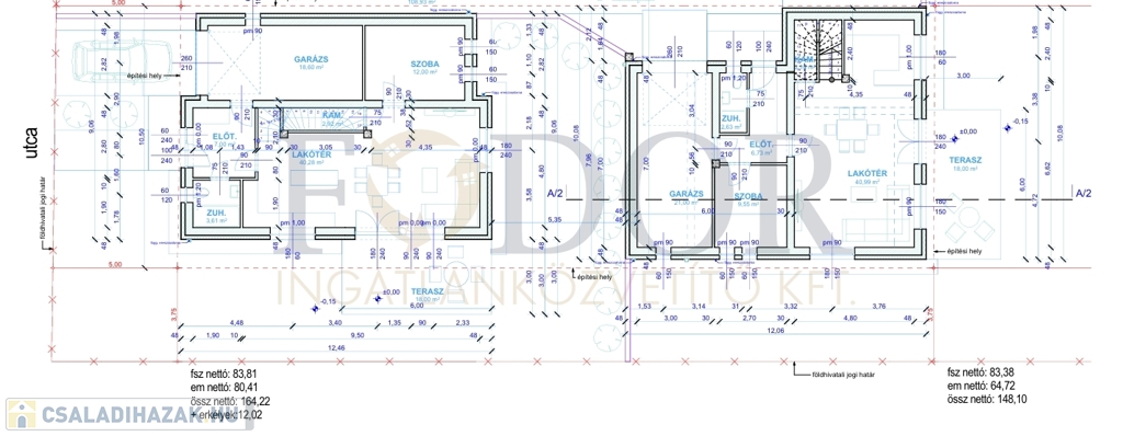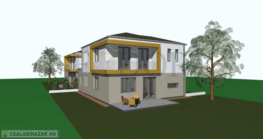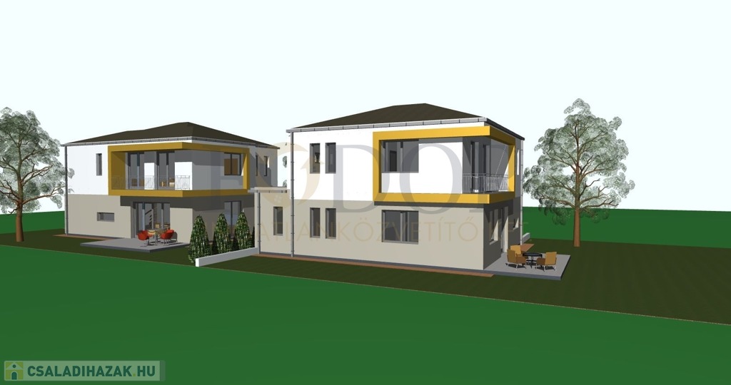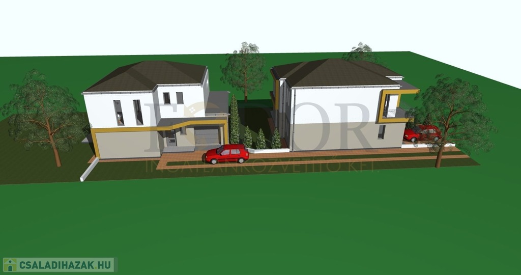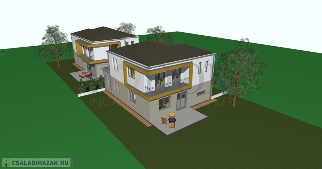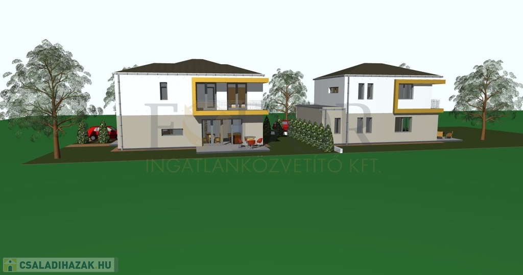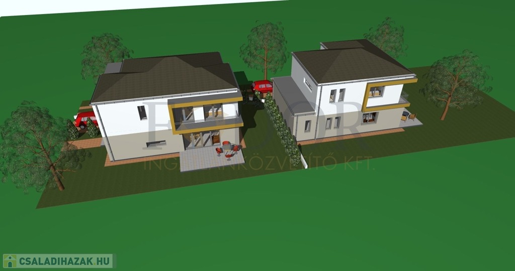 •	Ingatlanok kivitelezés: Két önálló családi ház épül, sehol nem érintkezik a két épület.