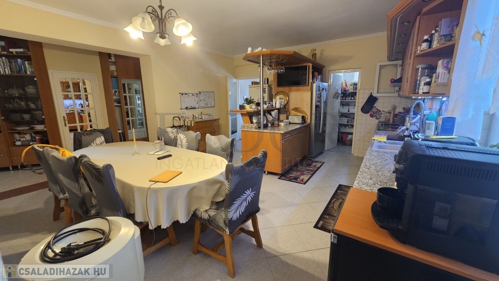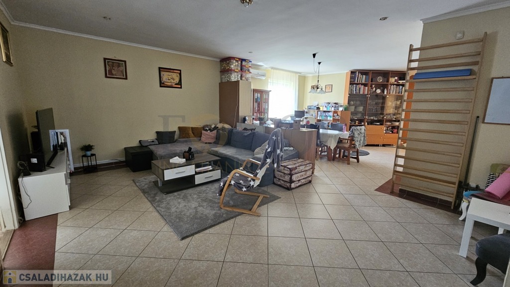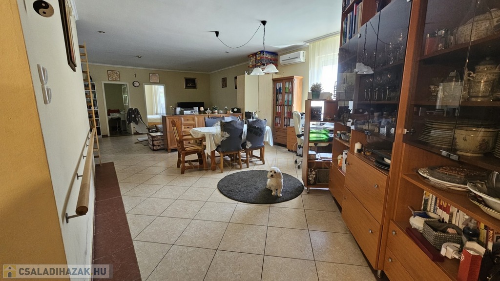 Eladó egy különleges kialakítású, tágas és világos családi ház, amely nemcsak otthonként, hanem vállalkozás színhelyeként is tökéletesen funkcionál. Az ingatlan fő élettere az alsó szinten található, 184 m²-en, gondosan megtervezett elosztással, ahol minden a kényelmet és a praktikumot szolgálja, a ház felső szintje már értékesítésre került.