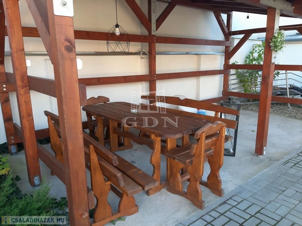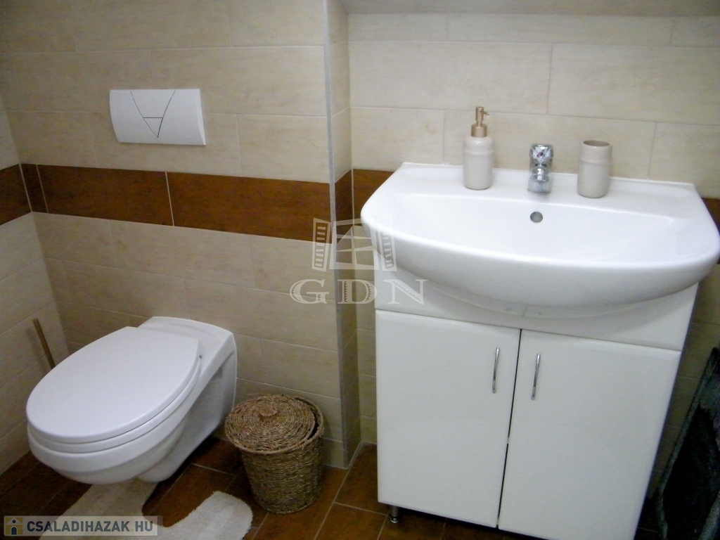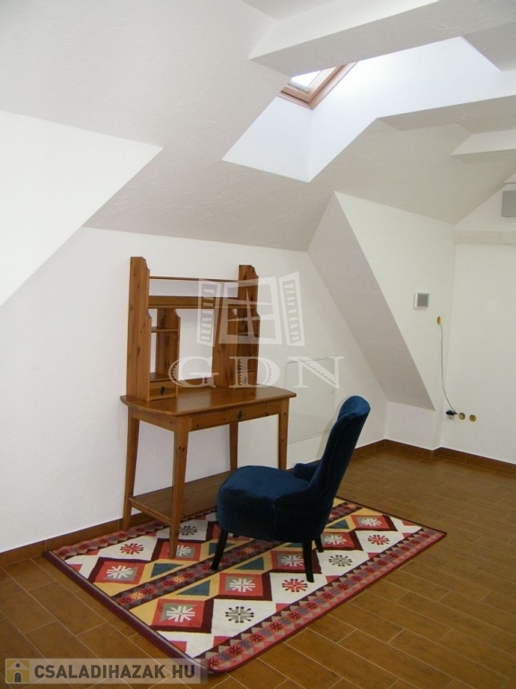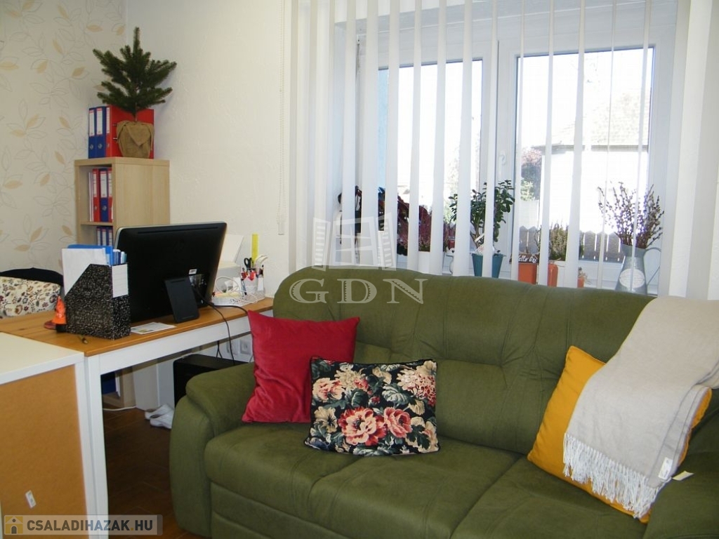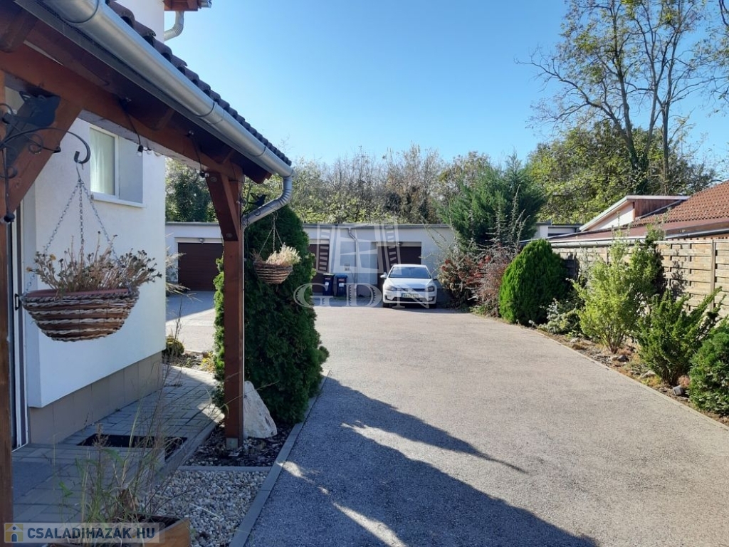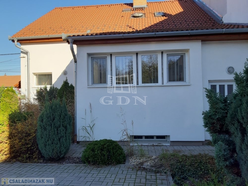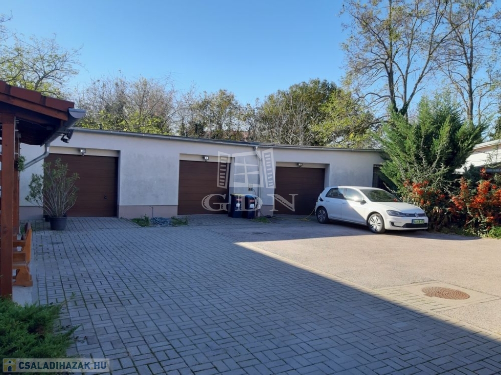 A lakóház két különálló, külön megközelíthető lakószintből + pinceszintből áll, továbbá a kert hátsó részén 128 nm-es téglaépítésű fűtött tároló és garázs található.