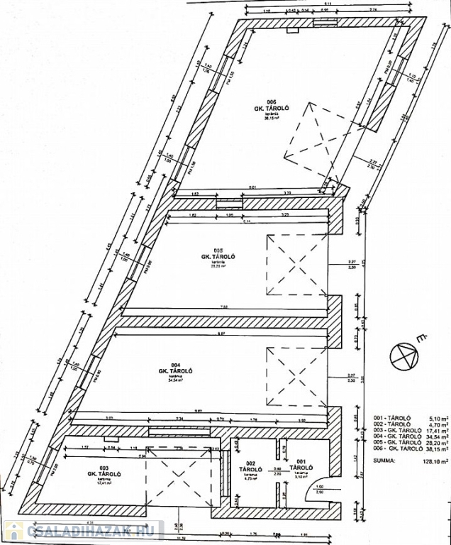 A 128 nm-es tárolóban 3 szeparált garázs van, minden helyiség fűtött, ablakos.