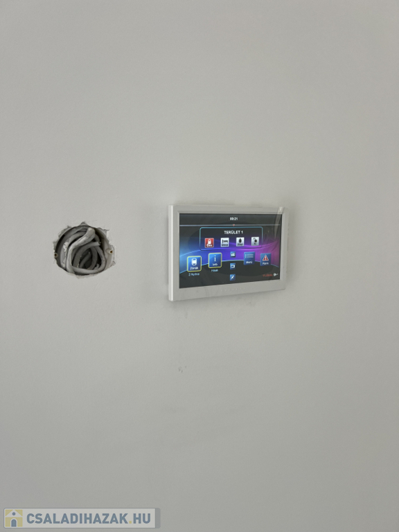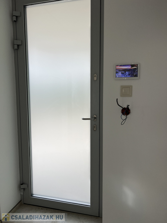 A házak fűtése Mitshubishi hőszivattyúval, padlófűtés mindenhol helyiségenkénti vezérlés előkészítéssel, óriási panoráma ablakokkal, beépített fokozott hőszigetelésű redőnytokokkal, emelő-toló (7méter széles) terasz ajtókkal. Bejárati ajtók 2,4 m magas alumínium szerkezetű, egyedi színezésű kívül- belül, opál üvegezéssel 3 rtg.-ű, dupla biztonsági zárral ellátott.