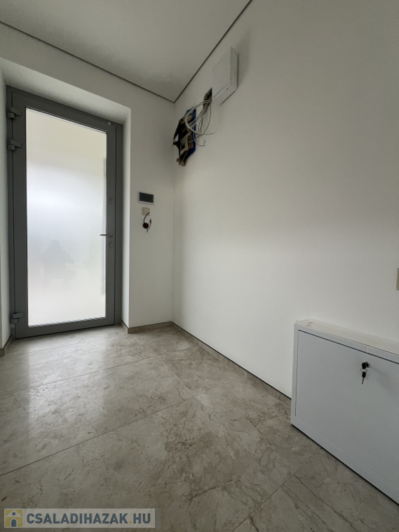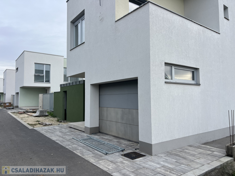 Épület körül nagy méretű trendi térburkolattal, növény sáv elválasztó szegélyekkel, szigetelt kerti tároló. Lapos tetőre jutás 3 rétegű üvegezésű Velux kupolán keresztül történik, belső vízelvezetéssel, szikkasztókkal.Jelenleg többféle típusú ház van eladó, az árak a ház méretétől ,szobaszámától,felszereltségétől változik 189mft- 239mft között !