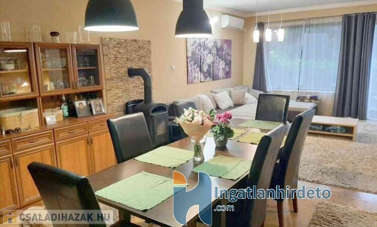 Elhelyezkedése: Belterület Állapota: Jó Komfort besorolása: Dupla komfortos Építési éve: 2000 Alapterülete: 209 m2 Telekterülete: 307 m2 Szobák száma: 6szoba Fűtés típusa: Cirkó Építési mód: Tégla Tető formája: Magas Tető anyaga: Cserép Parkolási lehetőség: Garázsban Jellemzői: Alacsony rezsi, Csendes környék, Jó közlekedés, Légkondicionáló, Beépített szekrény, Kert, Beépített tetőtér Energetikai besorolás: E Egyéb jellemzők: Terasz Közelben: Iskola, Óvoda