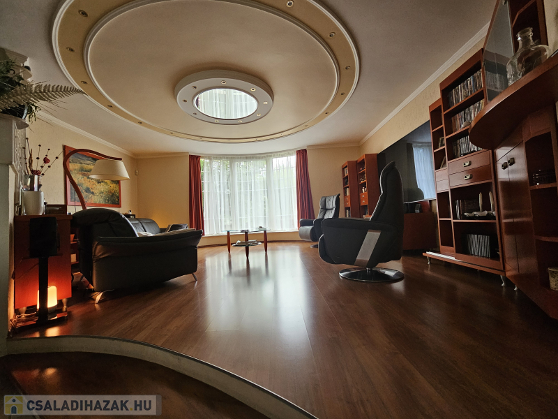 EGYEDI TERVEZÉSŰ, KERTVÁROSI, TÁGAS CSALÁDI HÁZ, MEDENCÉVEL, KÁPRÁZATOS KERTTEL!