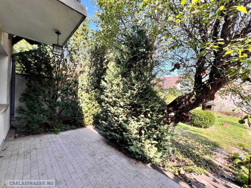 A kert kizárólagos használatú, tökéletes méretű, grillezéshez, gyerekjátszónak, pihenésre, kikapcsolódásra. Jelenleg is gyönyörű örökzöldek ékesítik, még elfér néhány virág, akár pici konyhakert.